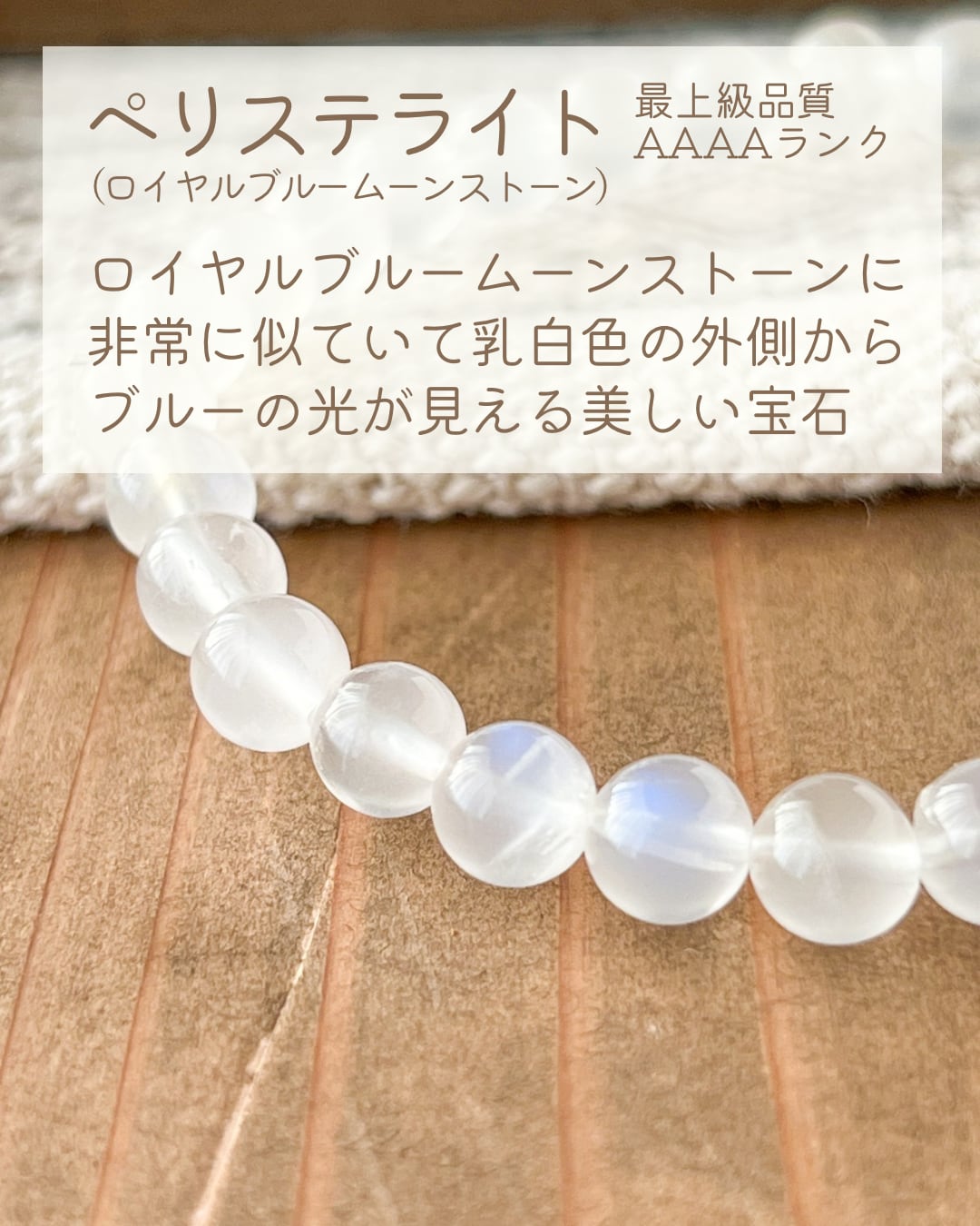 私の場合はロイヤルブルームーンストーン(ペリステライト)と表記されていて、