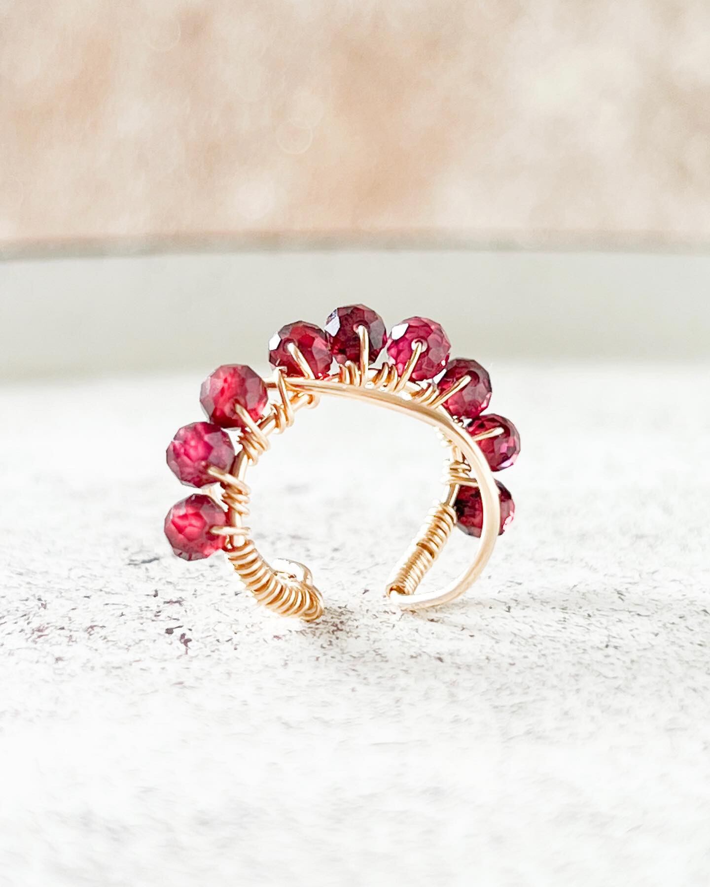 ガーネット・クロスフープイヤーカフ/1月誕生石〈stainless〉※片側1点のみ