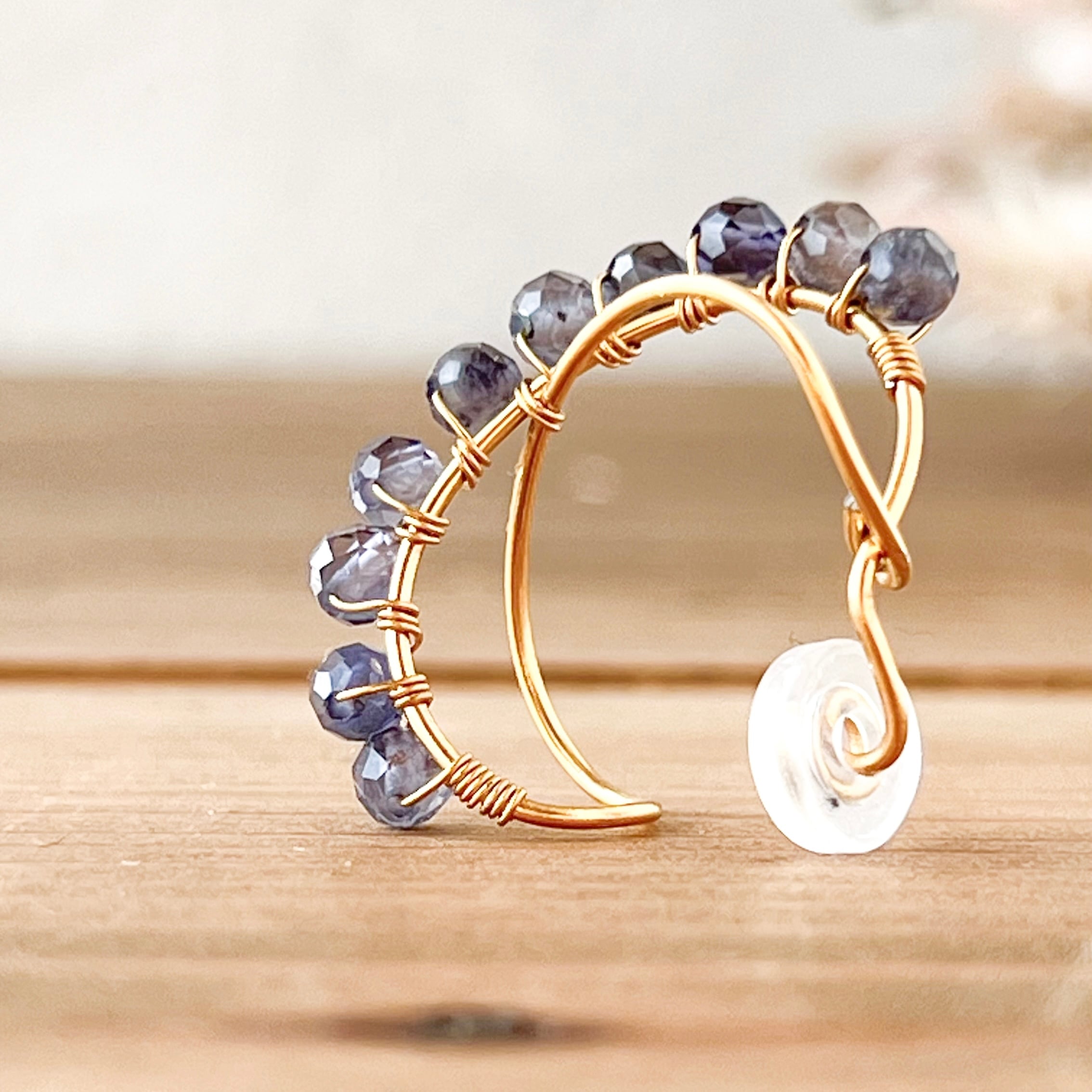 アイオライト・耳にフィットするクロスループイヤーカフ/3月誕生石〈ステンレス〉※片側1点のみ
